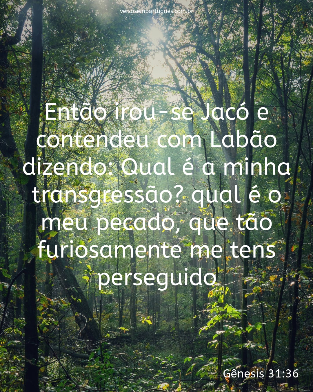 Então irou-se Jacó e contendeu com Labão, dizendo: Qual é a minha transgressão? qual é o meu pecado, que tão furiosamente me tens perseguido?