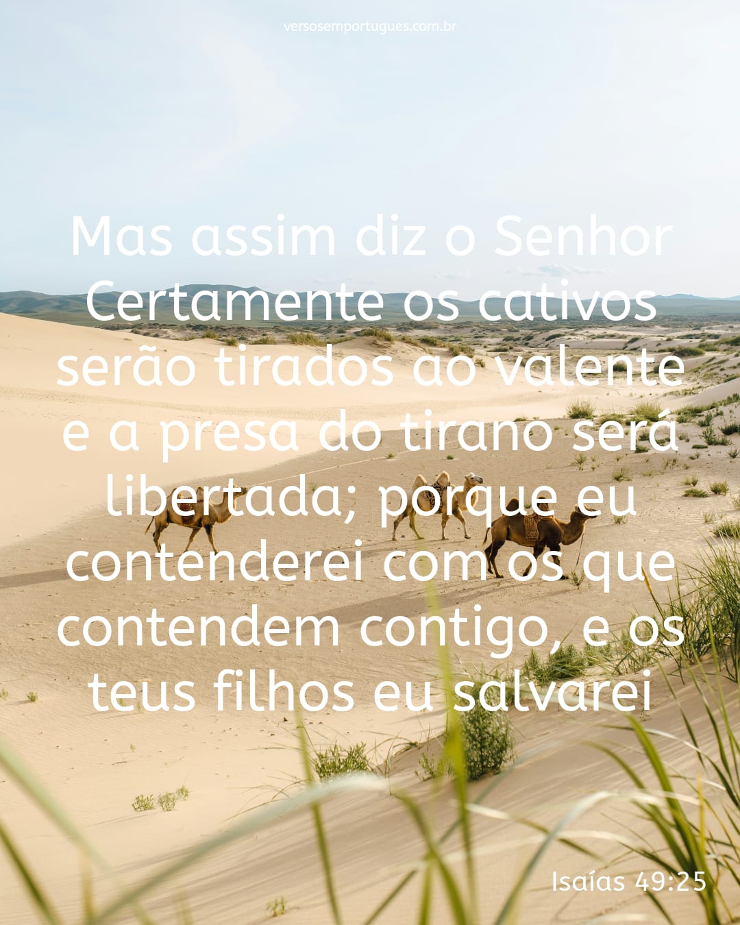 Mas assim diz o Senhor: Certamente os cativos serão tirados ao valente, e a presa do tirano será libertada; porque eu contenderei com os que contendem contigo, e os teus filhos eu salvarei.