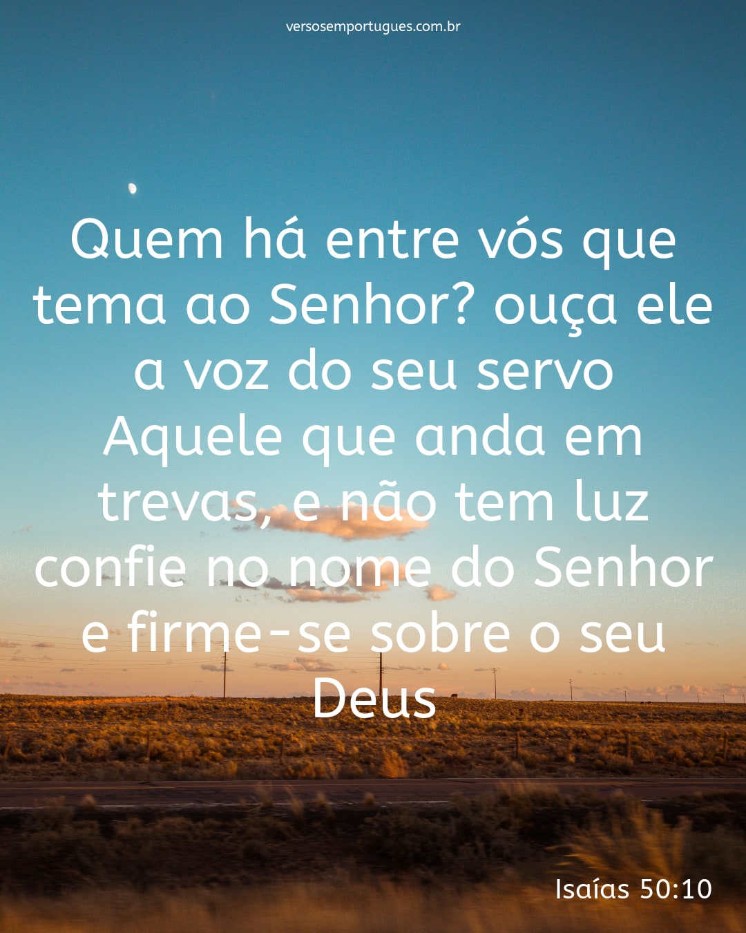 Quem há entre vós que tema ao Senhor? ouça ele a voz do seu servo. Aquele que anda em trevas, e não tem luz, confie no nome do Senhor, e firme-se sobre o seu Deus.