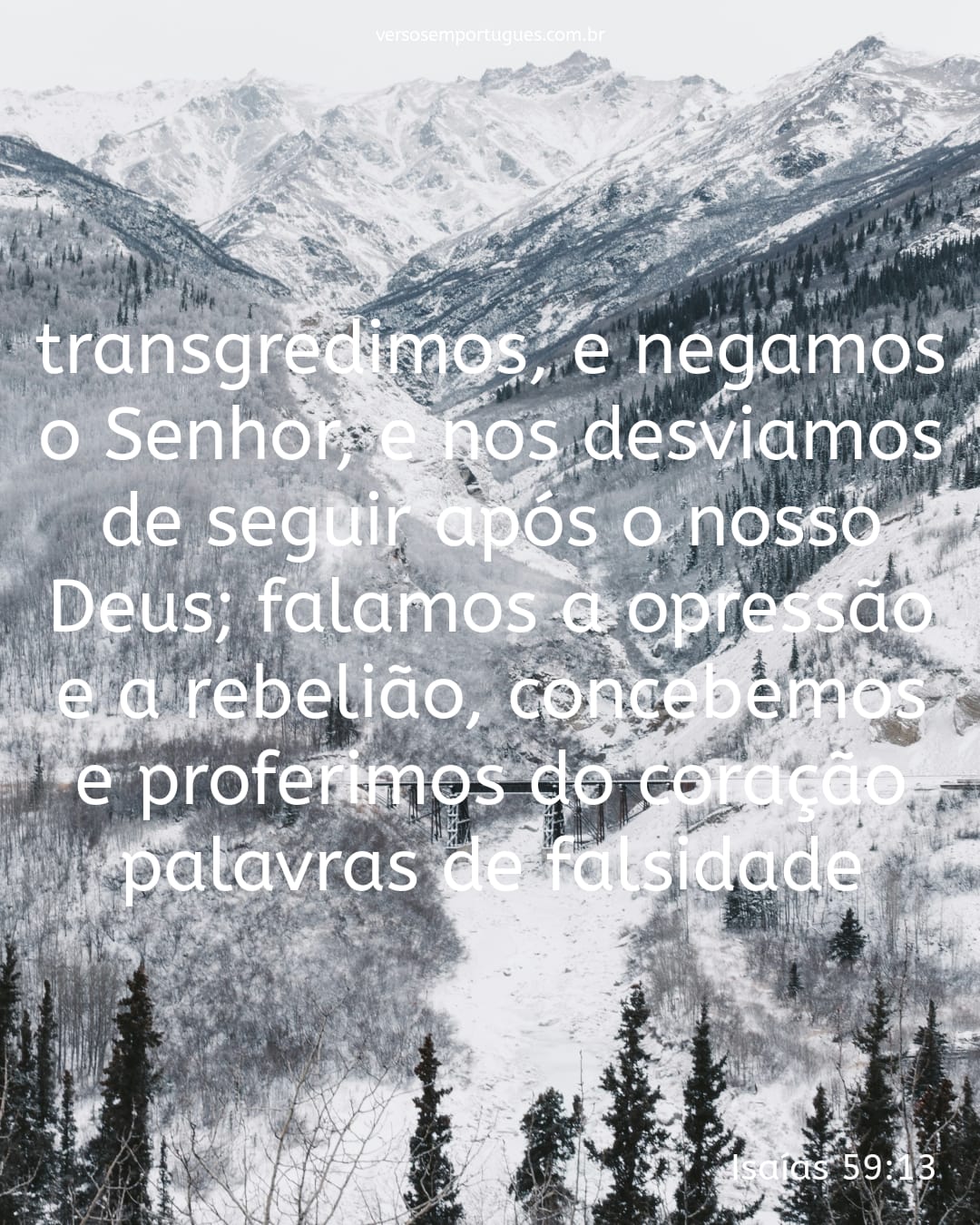 transgredimos, e negamos o Senhor, e nos desviamos de seguir após o nosso Deus; falamos a opressão e a rebelião, concebemos e proferimos do coração palavras de falsidade.