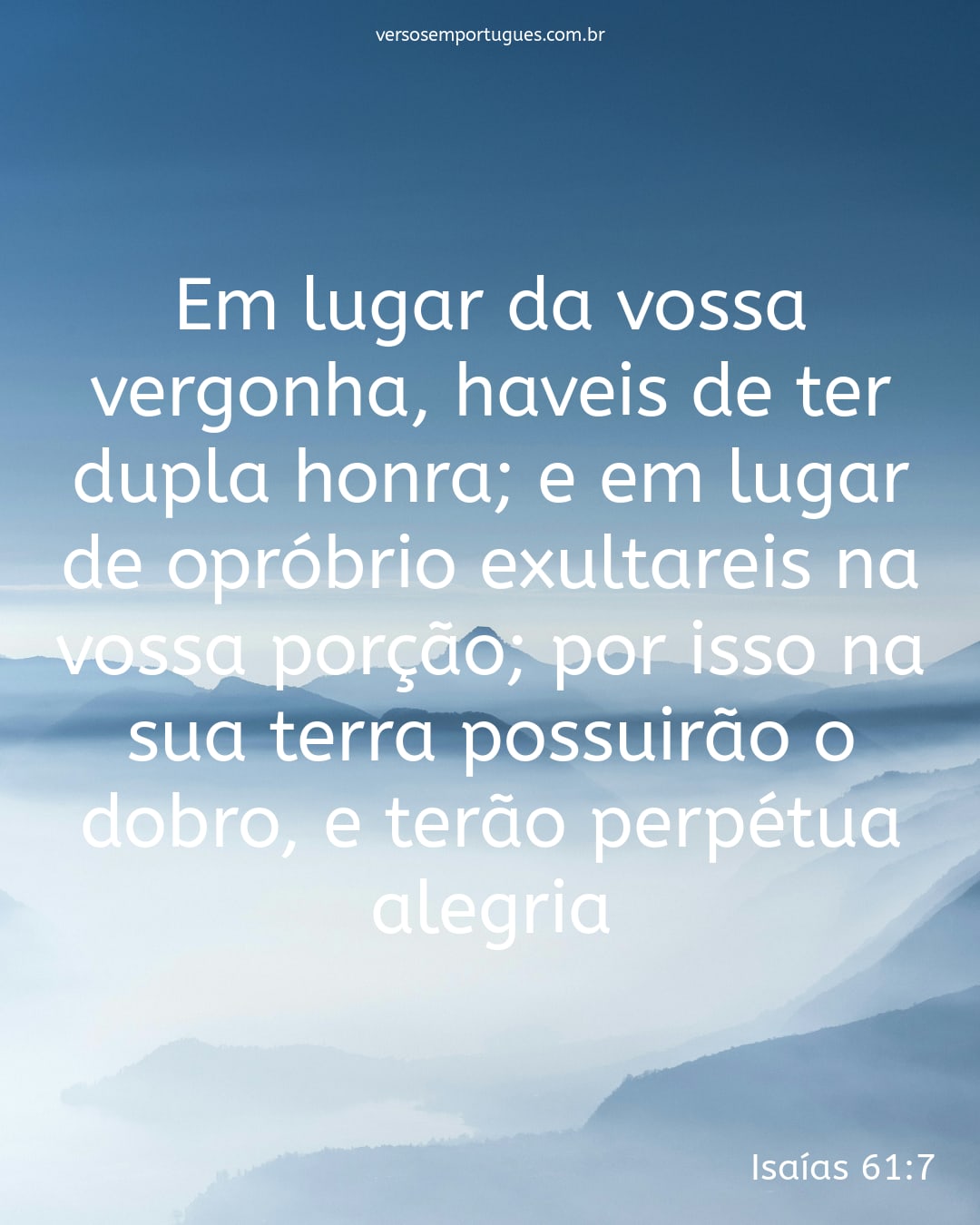 Em lugar da vossa vergonha, haveis de ter dupla honra; e em lugar de opróbrio exultareis na vossa porção; por isso na sua terra possuirão o dobro, e terão perpétua alegria.