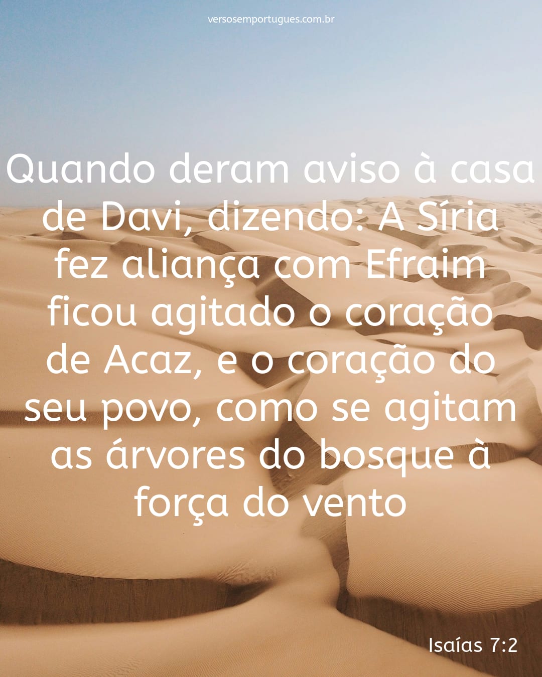 Quando deram aviso à casa de Davi, dizendo: A Síria fez aliança com Efraim; ficou agitado o coração de Acaz, e o coração do seu povo, como se agitam as árvores do bosque à força do vento.