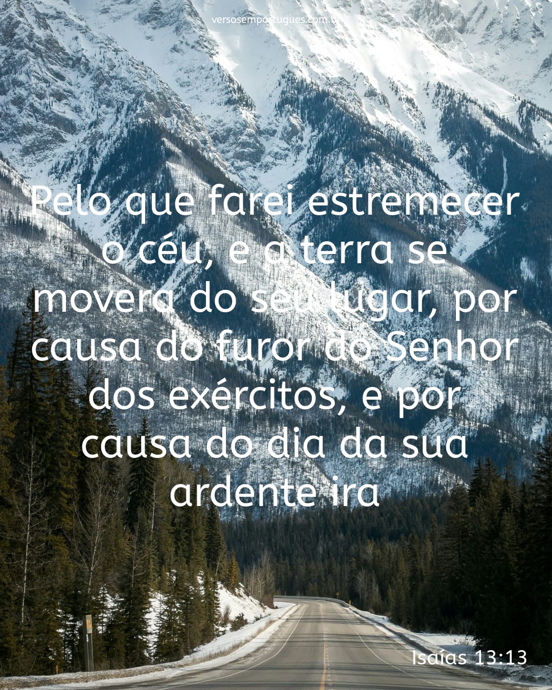 Pelo que farei estremecer o céu, e a terra se movera do seu lugar, por causa do furor do Senhor dos exércitos, e por causa do dia da sua ardente ira.