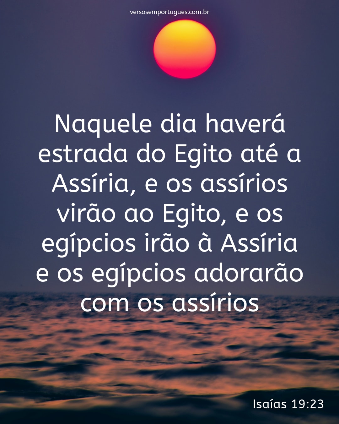 Naquele dia haverá estrada do Egito até a Assíria, e os assírios virão ao Egito, e os egípcios irão à Assíria; e os egípcios adorarão com os assírios.