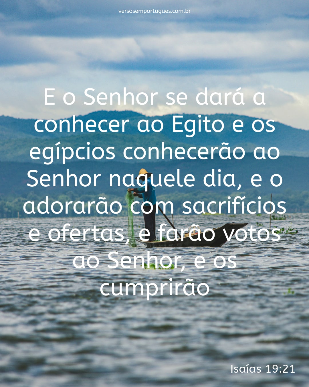 E o Senhor se dará a conhecer ao Egito e os egípcios conhecerão ao Senhor naquele dia, e o adorarão com sacrifícios e ofertas, e farão votos ao Senhor, e os cumprirão.