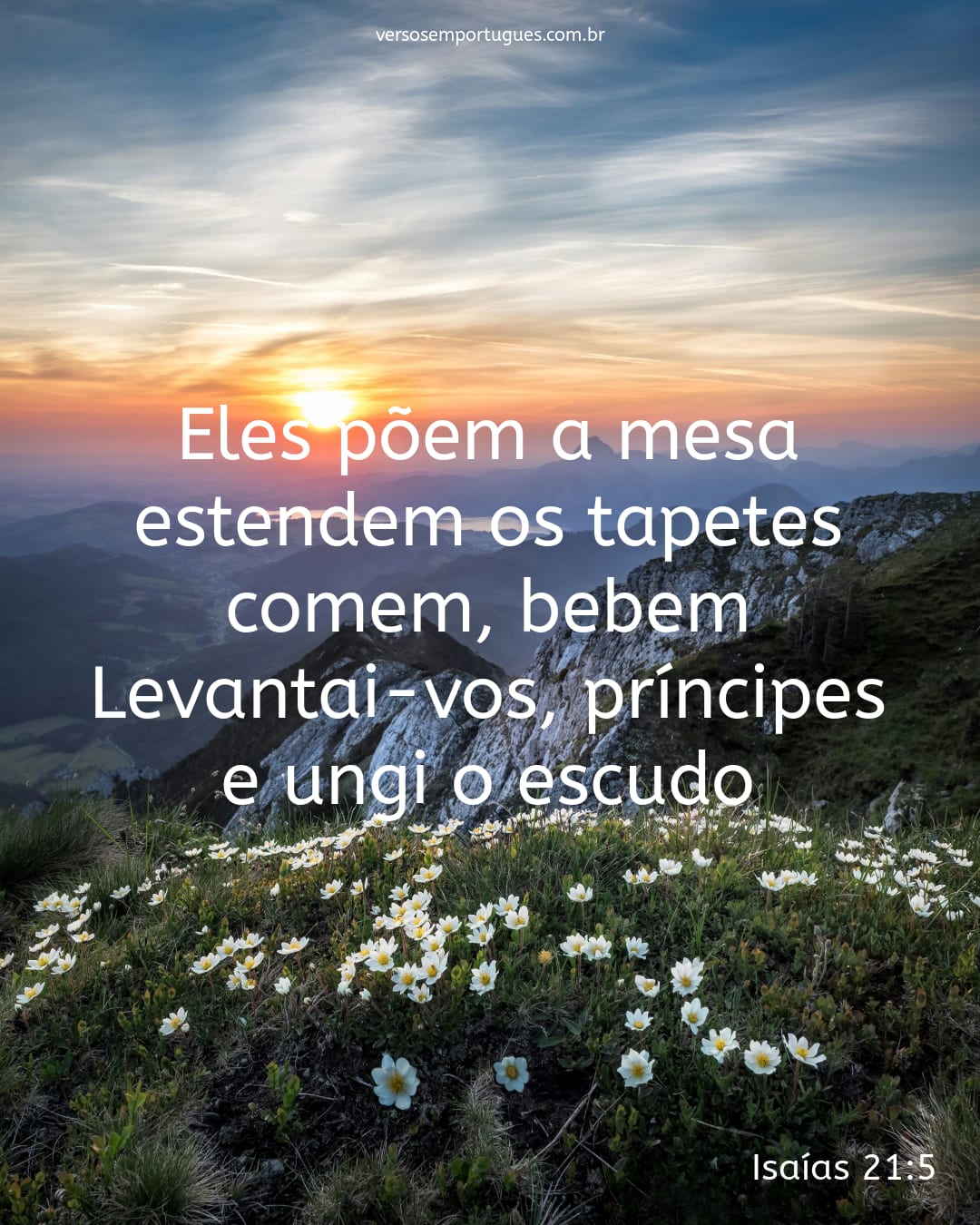 Eles põem a mesa, estendem os tapetes, comem, bebem. Levantai-vos, príncipes, e ungi o escudo.