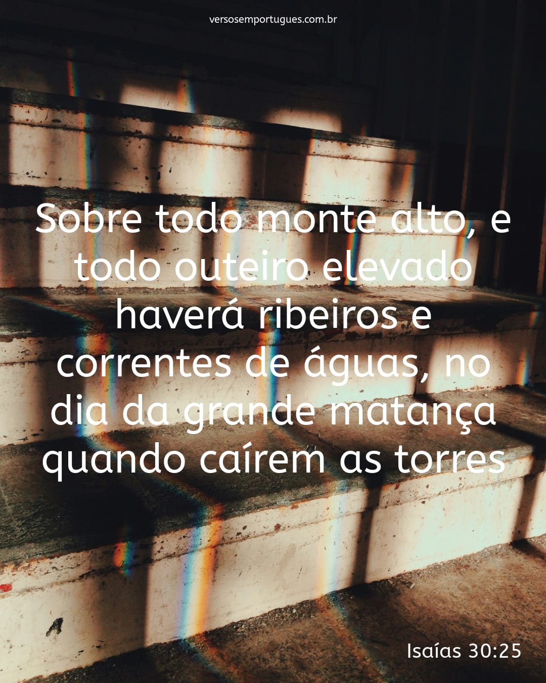 Sobre todo monte alto, e todo outeiro elevado haverá ribeiros e correntes de águas, no dia da grande matança, quando caírem as torres.