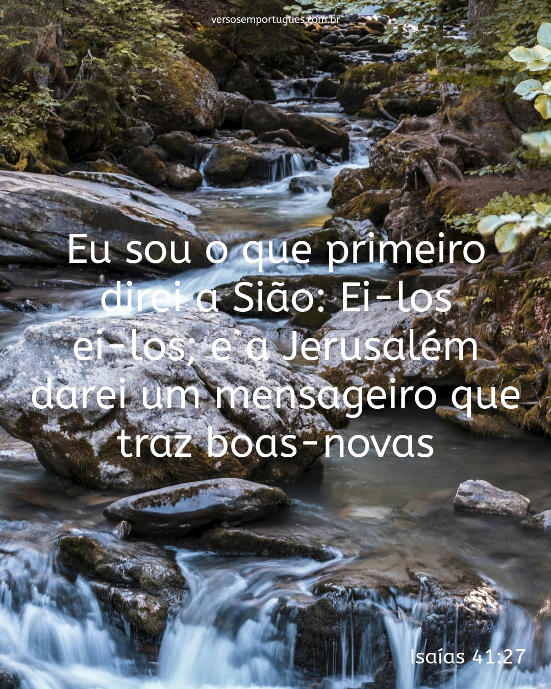 Eu sou o que primeiro direi a Sião: Ei-los, ei-los; e a Jerusalém darei um mensageiro que traz boas-novas.