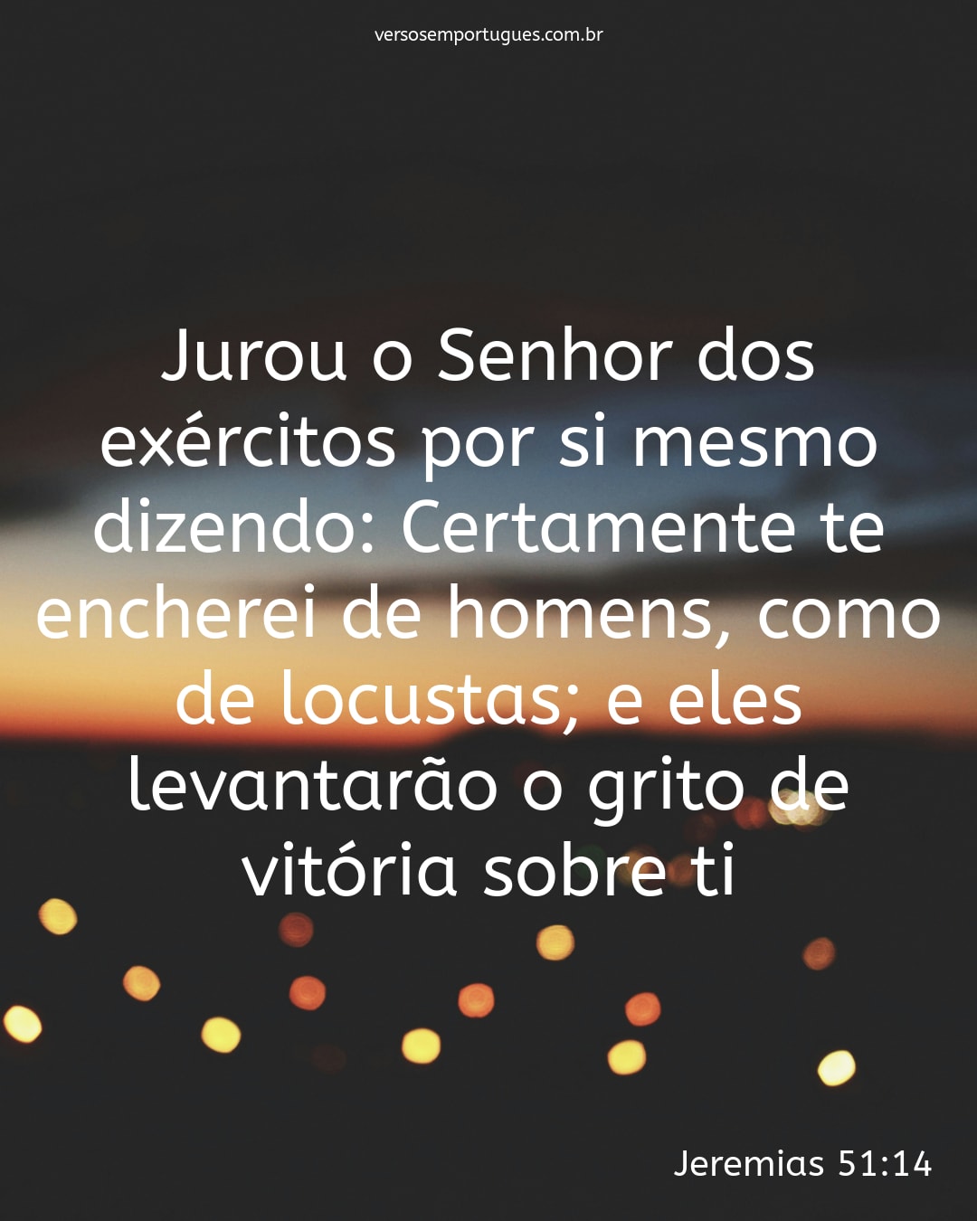 Jurou o Senhor dos exércitos por si mesmo, dizendo: Certamente te encherei de homens, como de locustas; e eles levantarão o grito de vitória sobre ti.