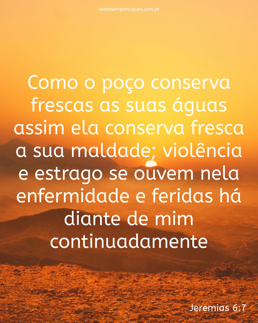 Como o poço conserva frescas as suas águas, assim ela conserva fresca a sua maldade; violência e estrago se ouvem nela; enfermidade e feridas há diante de mim continuadamente.