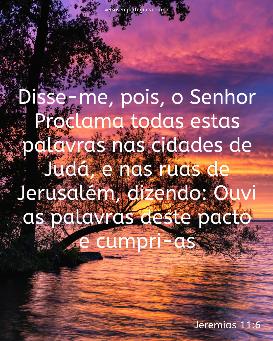 Disse-me, pois, o Senhor: Proclama todas estas palavras nas cidades de Judá, e nas ruas de Jerusalém, dizendo: Ouvi as palavras deste pacto, e cumpri-as.