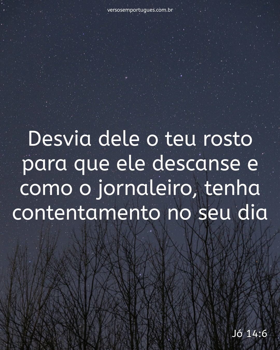 Desvia dele o teu rosto, para que ele descanse e, como o jornaleiro, tenha contentamento no seu dia.