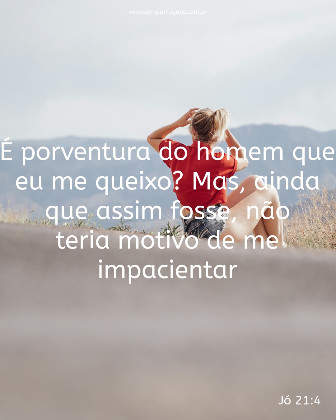 É porventura do homem que eu me queixo? Mas, ainda que assim fosse, não teria motivo de me impacientar?