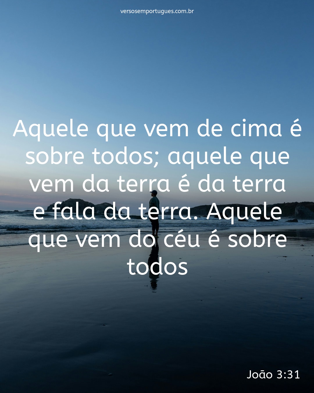 Aquele que vem de cima é sobre todos; aquele que vem da terra é da terra, e fala da terra. Aquele que vem do céu é sobre todos.