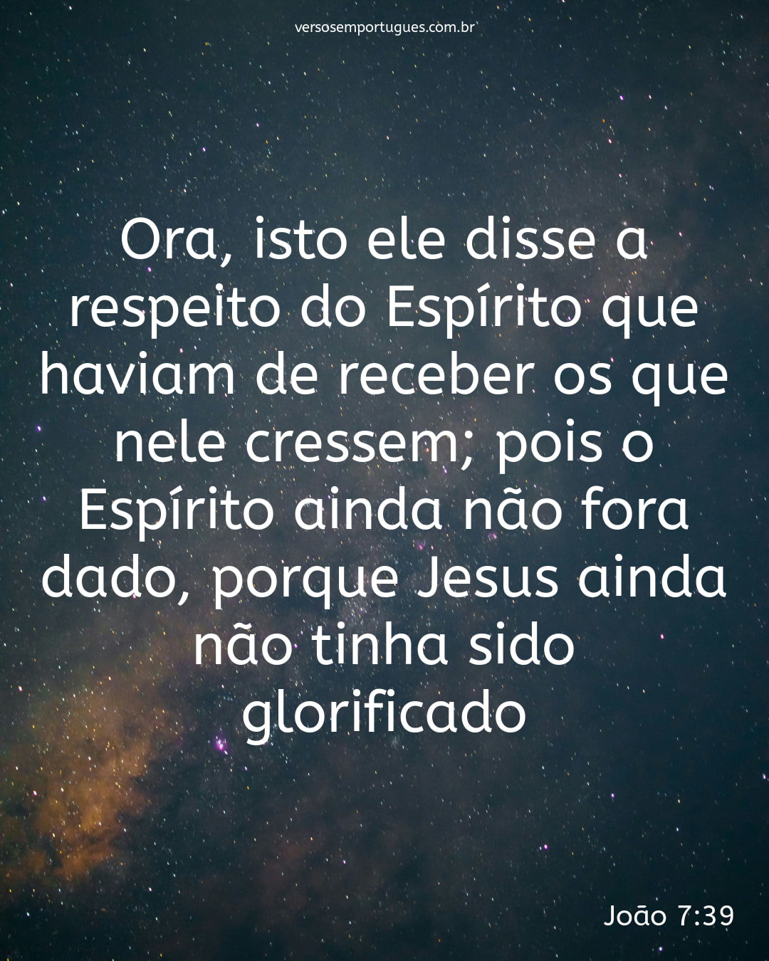 Ora, isto ele disse a respeito do Espírito que haviam de receber os que nele cressem; pois o Espírito ainda não fora dado, porque Jesus ainda não tinha sido glorificado.