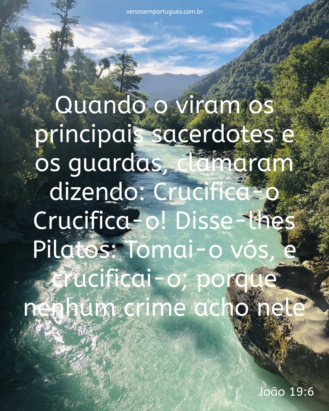 Quando o viram os principais sacerdotes e os guardas, clamaram, dizendo: Crucifica-o! Crucifica-o! Disse-lhes Pilatos: Tomai-o vós, e crucificai-o; porque nenhum crime acho nele.
