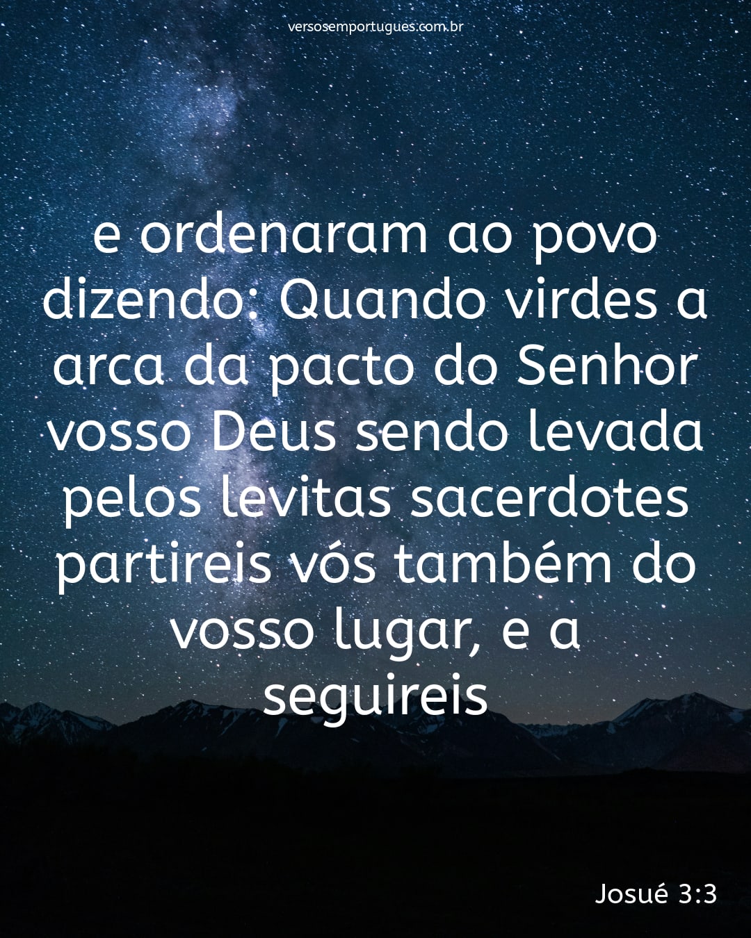 e ordenaram ao povo, dizendo: Quando virdes a arca da pacto do Senhor vosso Deus sendo levada pelos levitas sacerdotes, partireis vós também do vosso lugar, e a seguireis