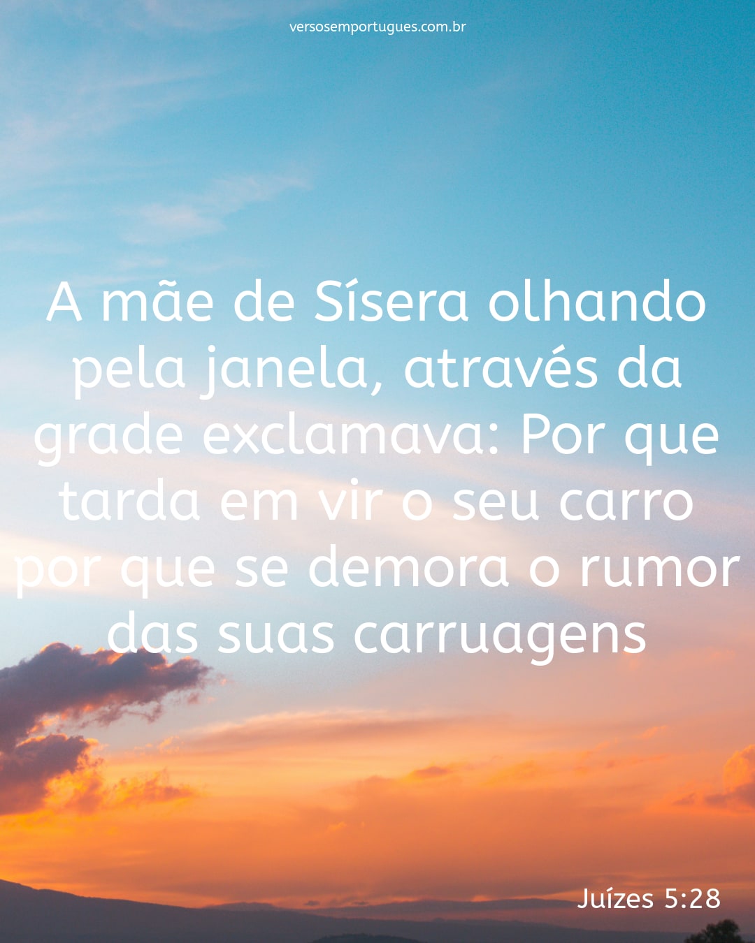 A mãe de Sísera olhando pela janela, através da grade exclamava: Por que tarda em vir o seu carro? por que se demora o rumor das suas carruagens?