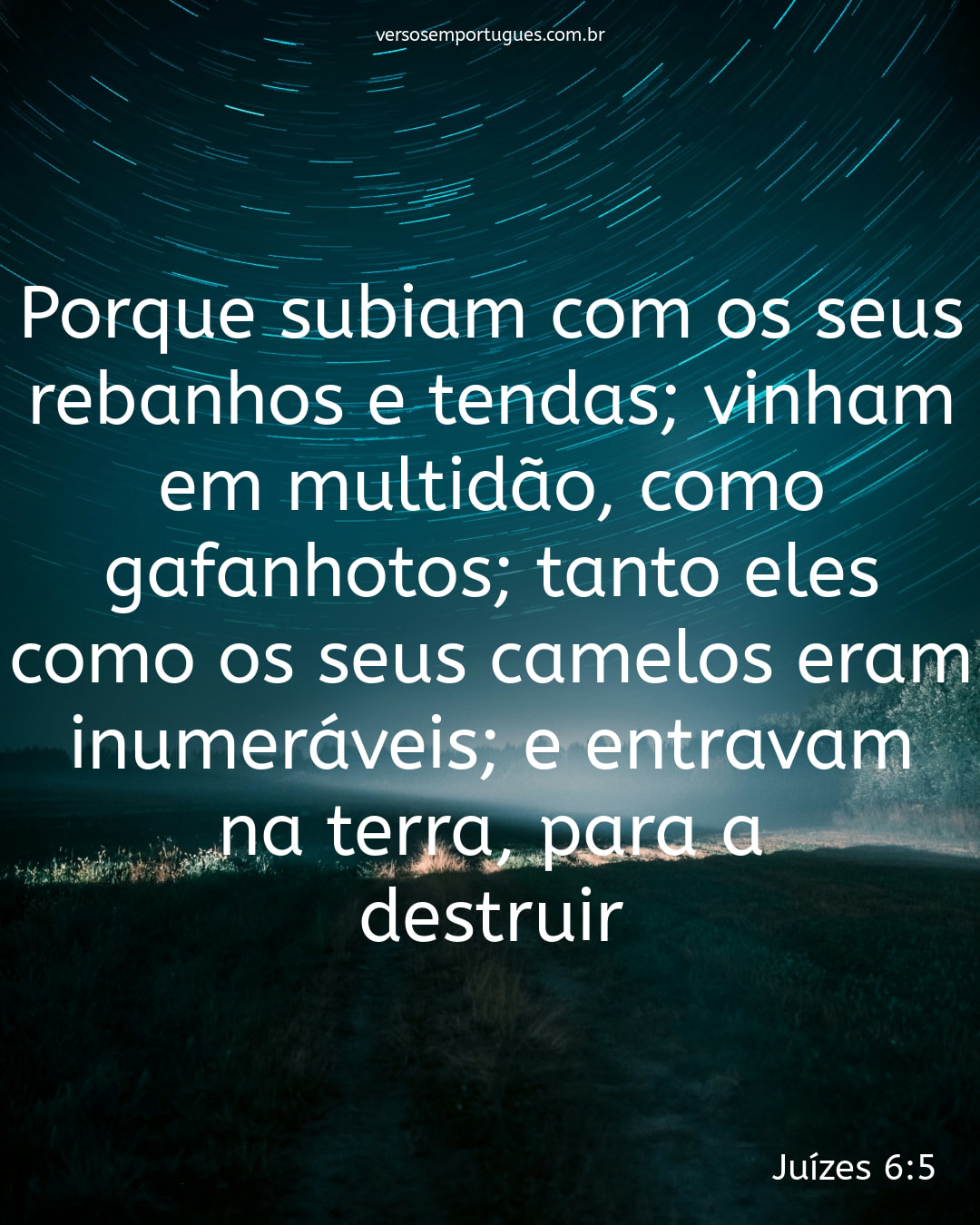 Porque subiam com os seus rebanhos e tendas; vinham em multidão, como gafanhotos; tanto eles como os seus camelos eram inumeráveis; e entravam na terra, para a destruir.