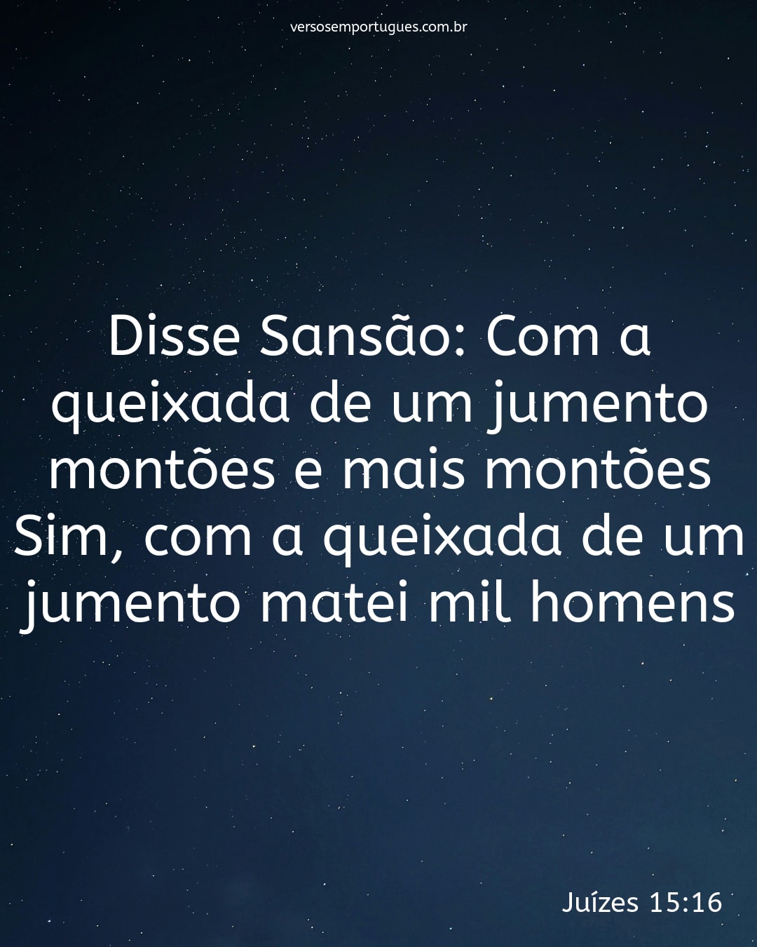 Disse Sansão: Com a queixada de um jumento montões e mais montões! Sim, com a queixada de um jumento matei mil homens.