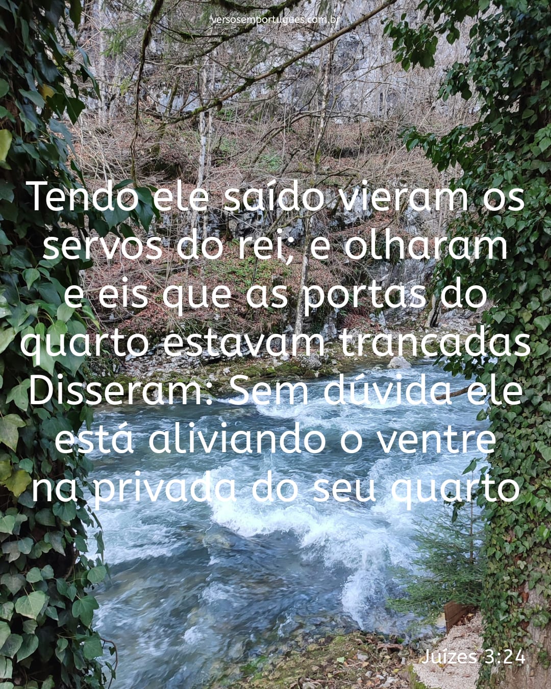 Tendo ele saído vieram os servos do rei; e olharam, e eis que as portas do quarto estavam trancadas. Disseram: Sem dúvida ele está aliviando o ventre na privada do seu quarto.