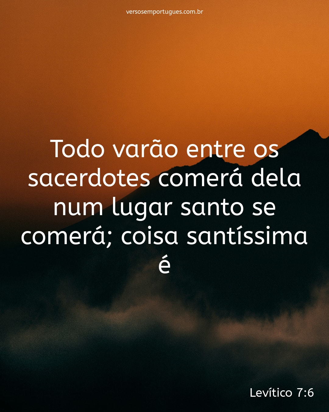 Todo varão entre os sacerdotes comerá dela; num lugar santo se comerá; coisa santíssima é.