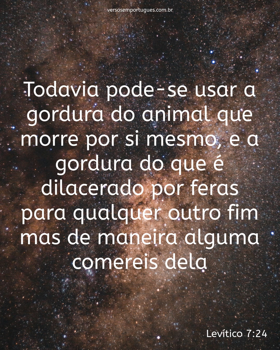 Fala aos filhos de Israel, dizendo: Nenhuma gordura de boi, nem de carneiro, nem de cabra comereis.