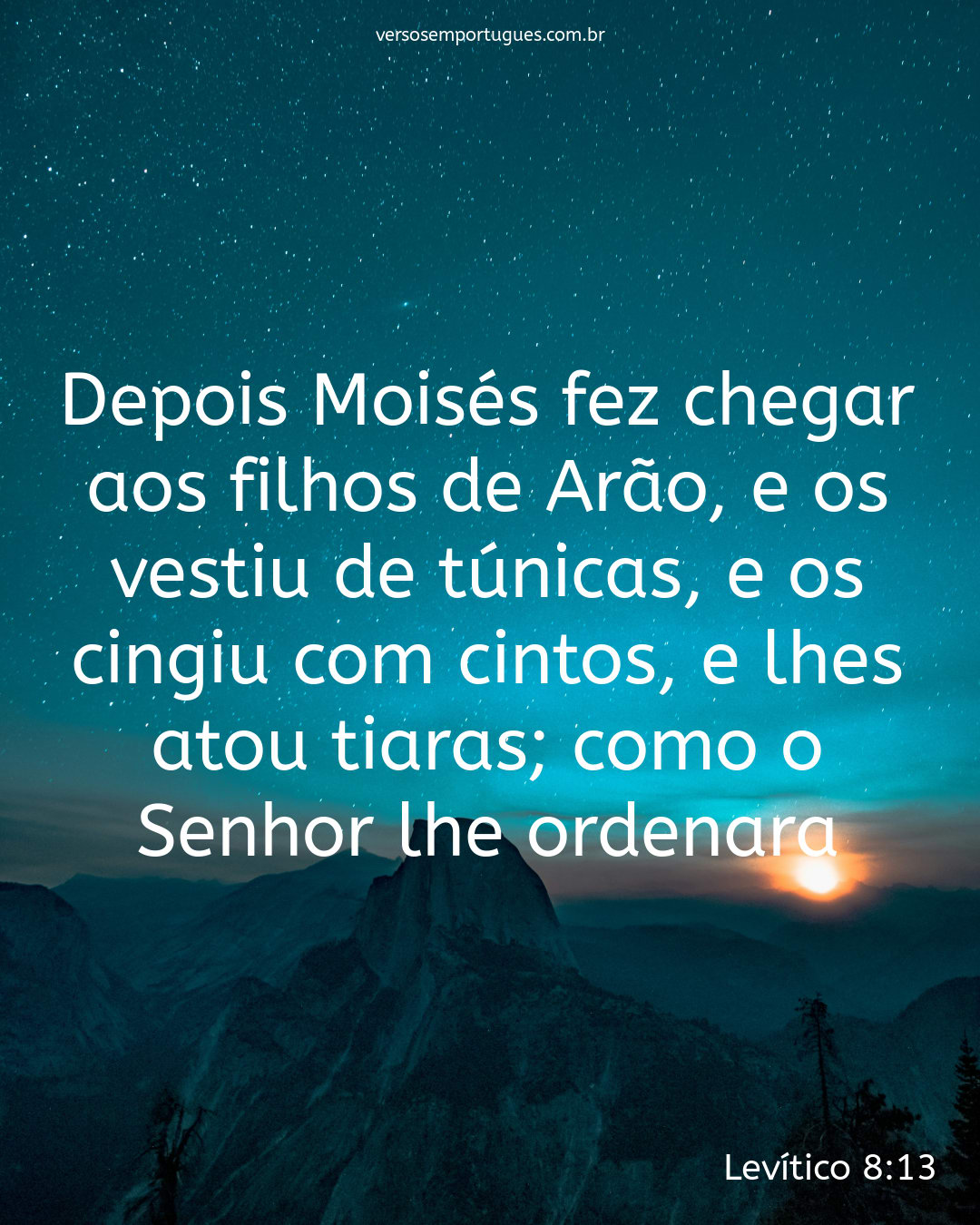 Depois Moisés fez chegar aos filhos de Arão, e os vestiu de túnicas, e os cingiu com cintos, e lhes atou tiaras; como o Senhor lhe ordenara.