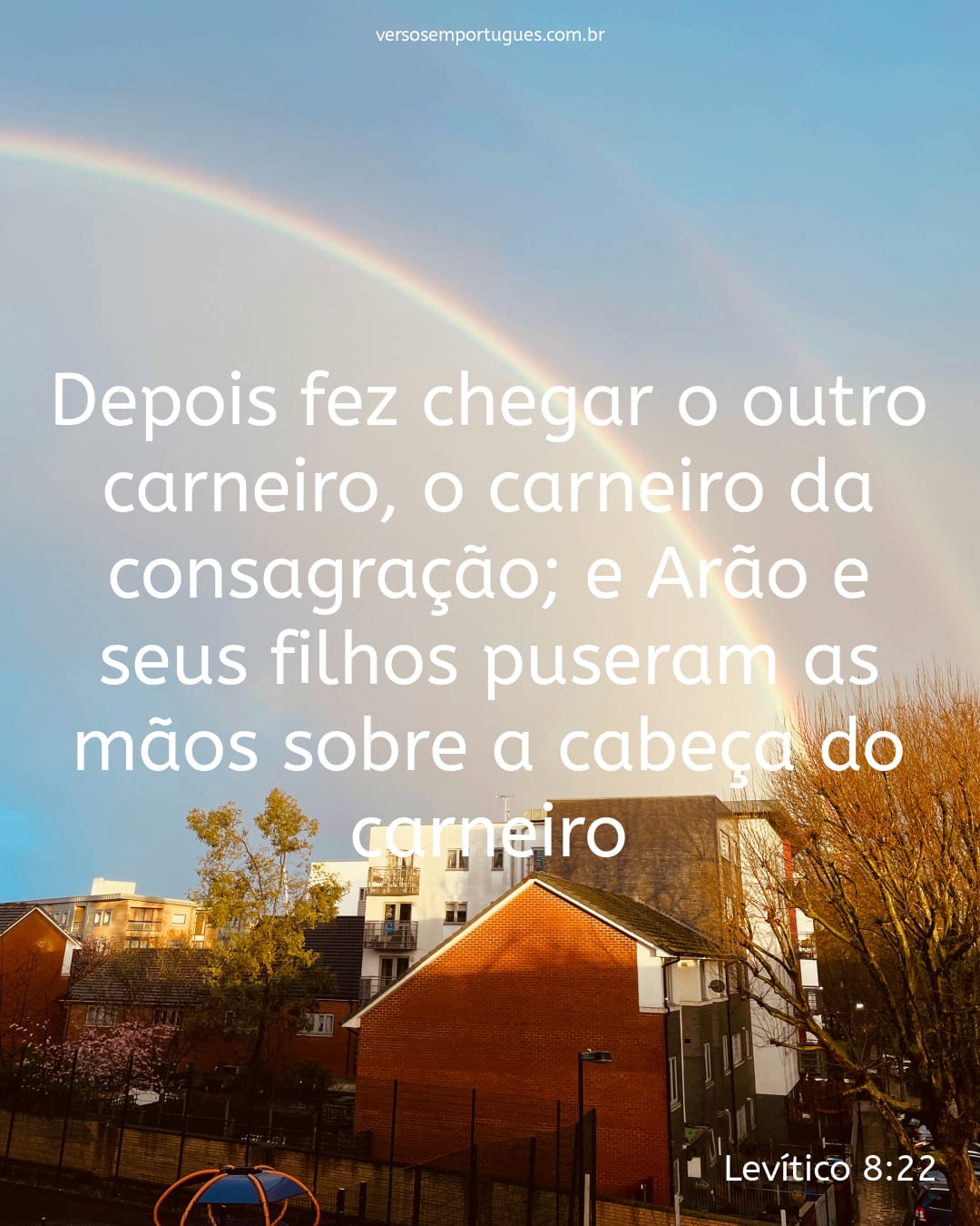 Depois fez chegar o outro carneiro, o carneiro da consagração; e Arão e seus filhos puseram as mãos sobre a cabeça do carneiro;