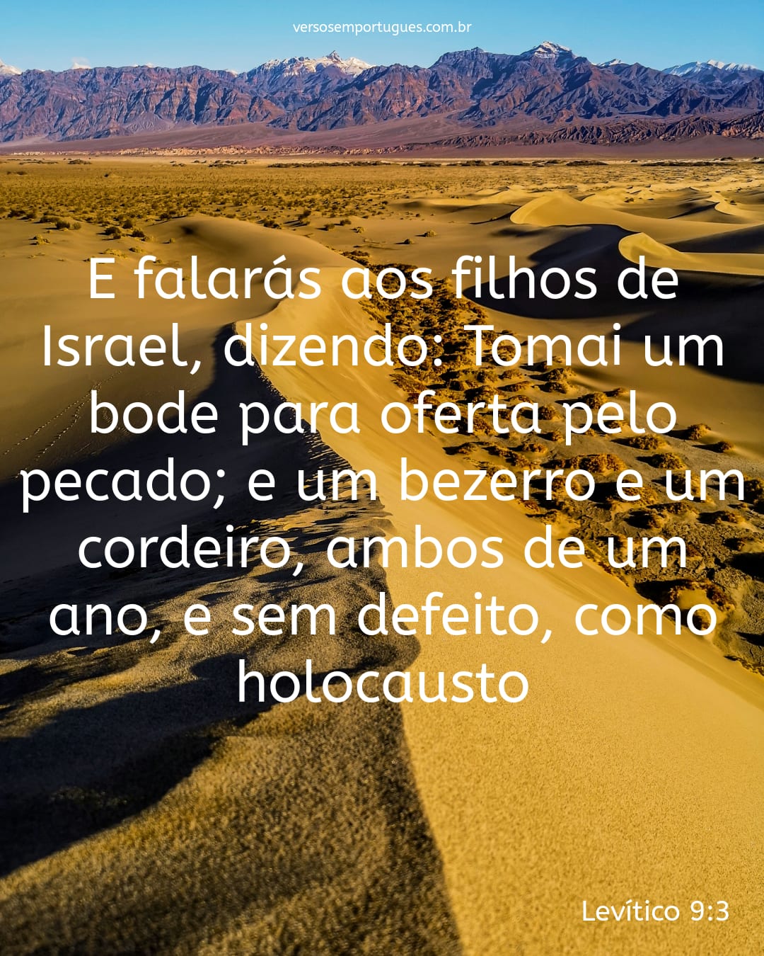 E falarás aos filhos de Israel, dizendo: Tomai um bode para oferta pelo pecado; e um bezerro e um cordeiro, ambos de um ano, e sem defeito, como holocausto;