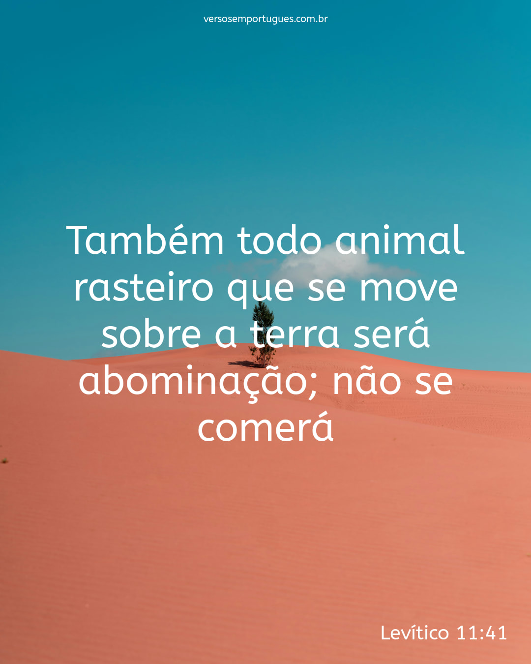 Tudo o que anda sobre o ventre, tudo o que anda sobre quatro pés, e tudo o que tem muitos pés, enfim todos os animais rasteiros que se movem sobre a terra, desses não comereis, porquanto são abomináveis.