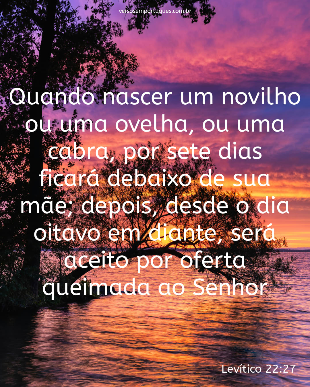 Quando nascer um novilho, ou uma ovelha, ou uma cabra, por sete dias ficará debaixo de sua mãe; depois, desde o dia oitavo em diante, será aceito por oferta queimada ao Senhor.
