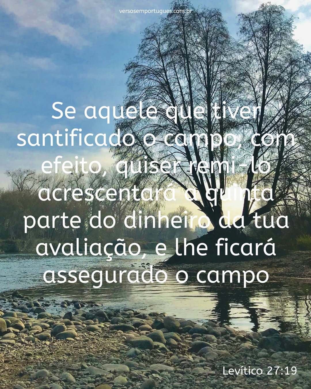 Se aquele que tiver santificado o campo, com efeito, quiser remi-lo, acrescentará a quinta parte do dinheiro da tua avaliação, e lhe ficará assegurado o campo.