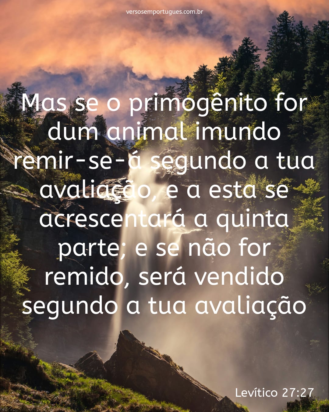 Mas se o primogênito for dum animal imundo, remir-se-á segundo a tua avaliação, e a esta se acrescentará a quinta parte; e se não for remido, será vendido segundo a tua avaliação.