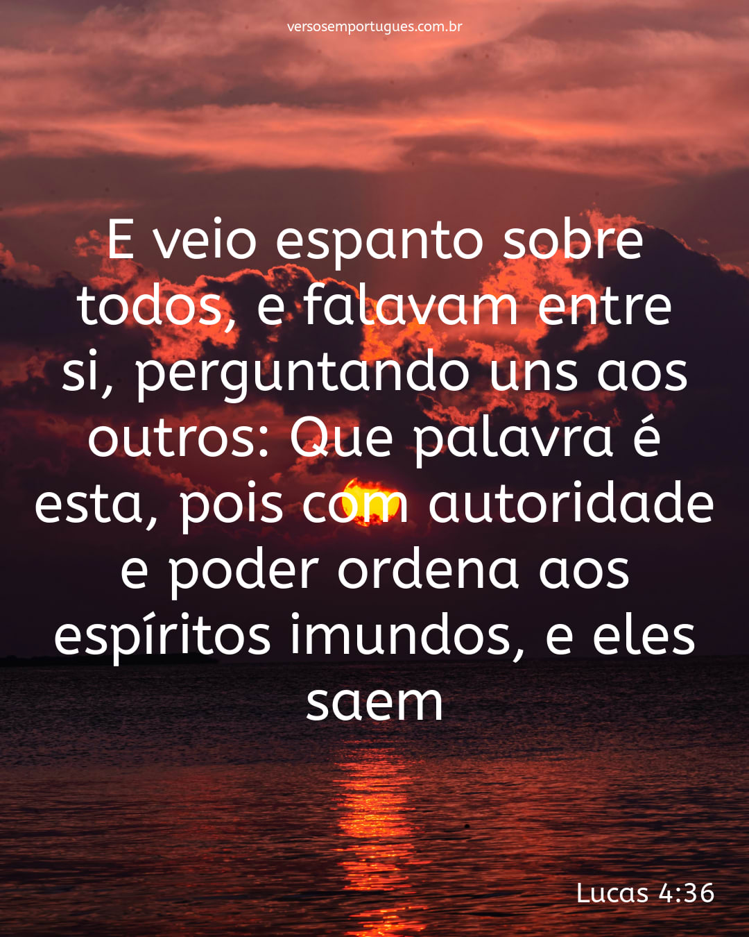 E veio espanto sobre todos, e falavam entre si, perguntando uns aos outros: Que palavra é esta, pois com autoridade e poder ordena aos espíritos imundos, e eles saem?