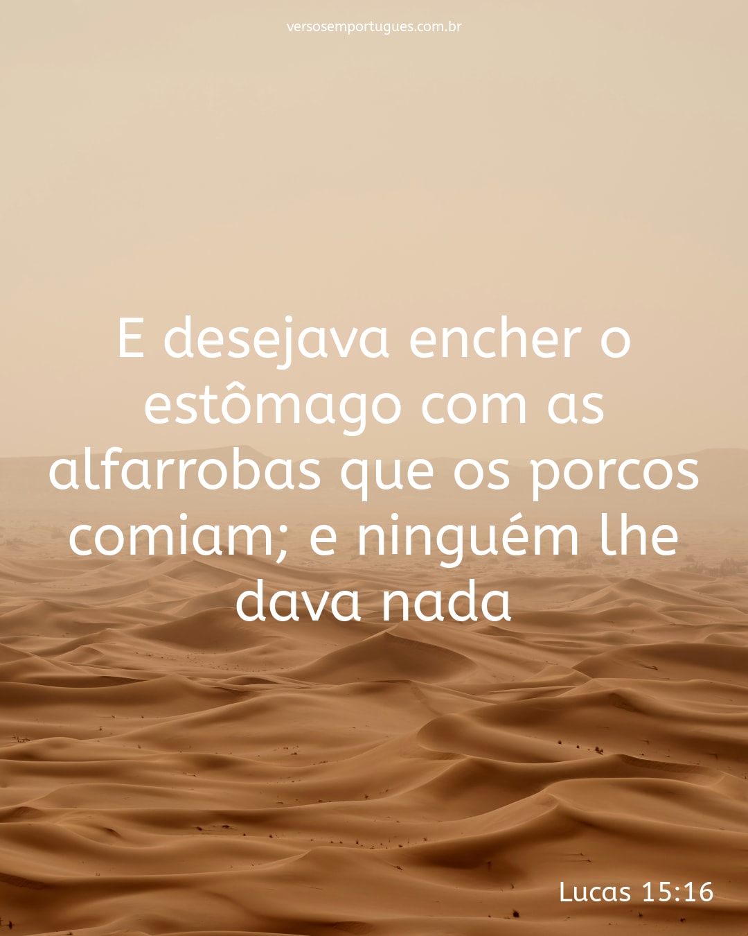 E desejava encher o estômago com as alfarrobas que os porcos comiam; e ninguém lhe dava nada.