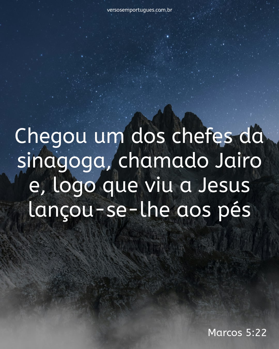 Chegou um dos chefes da sinagoga, chamado Jairo e, logo que viu a Jesus, lançou-se-lhe aos pés.