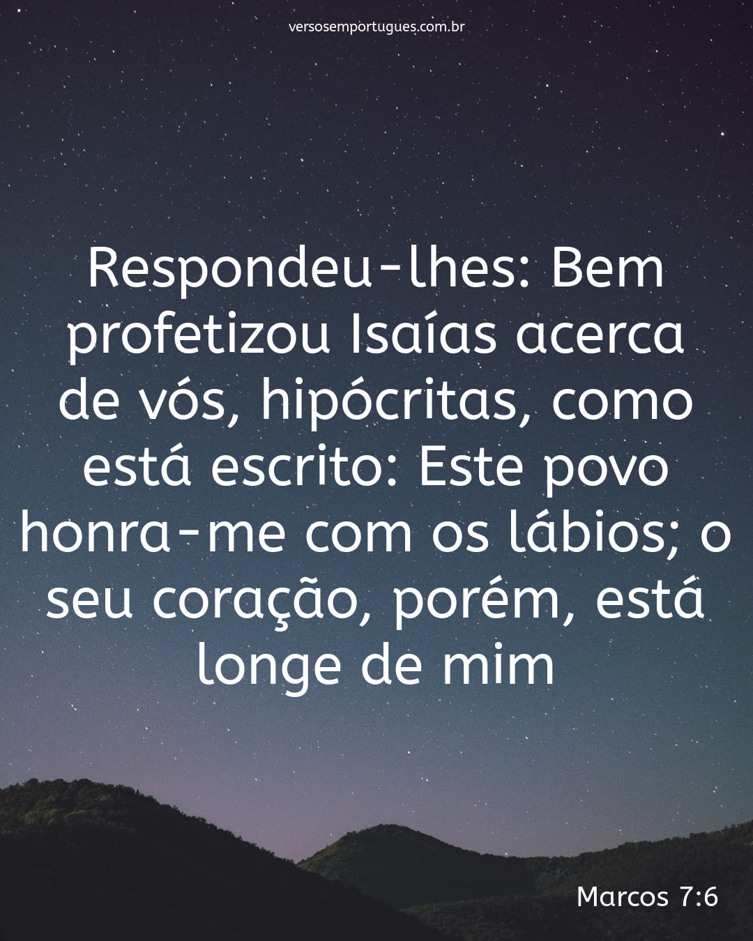 Respondeu-lhes: Bem profetizou Isaías acerca de vós, hipócritas, como está escrito: Este povo honra-me com os lábios; o seu coração, porém, está longe de mim;
