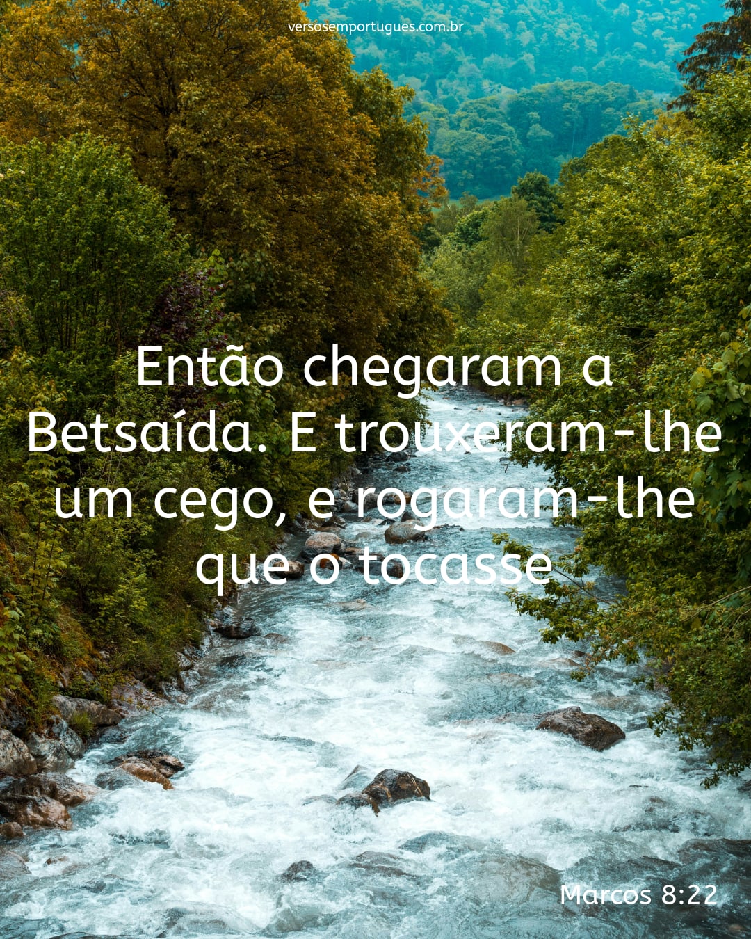 Jesus, pois, tomou o cego pela mão, e o levou para fora da aldeia; e cuspindo-lhe nos olhos, e impondo-lhe as mãos, perguntou-lhe: Vês alguma coisa?
