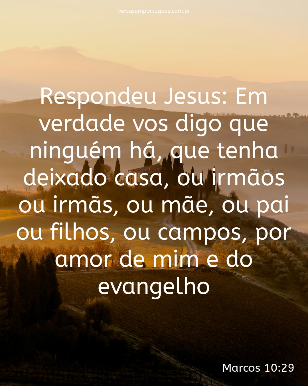 Respondeu Jesus: Em verdade vos digo que ninguém há, que tenha deixado casa, ou irmãos, ou irmãs, ou mãe, ou pai, ou filhos, ou campos, por amor de mim e do evangelho,