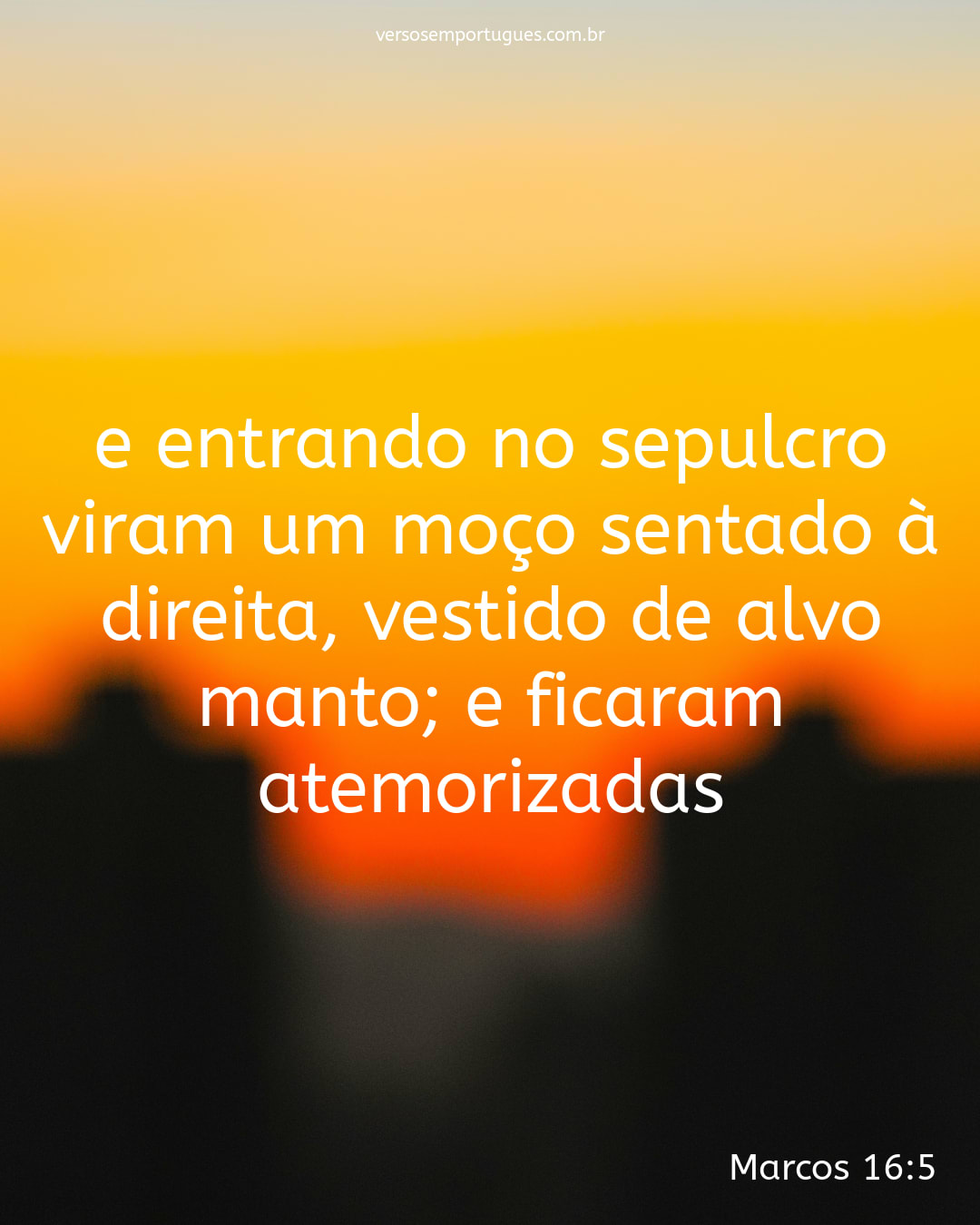 e entrando no sepulcro, viram um moço sentado à direita, vestido de alvo manto; e ficaram atemorizadas.