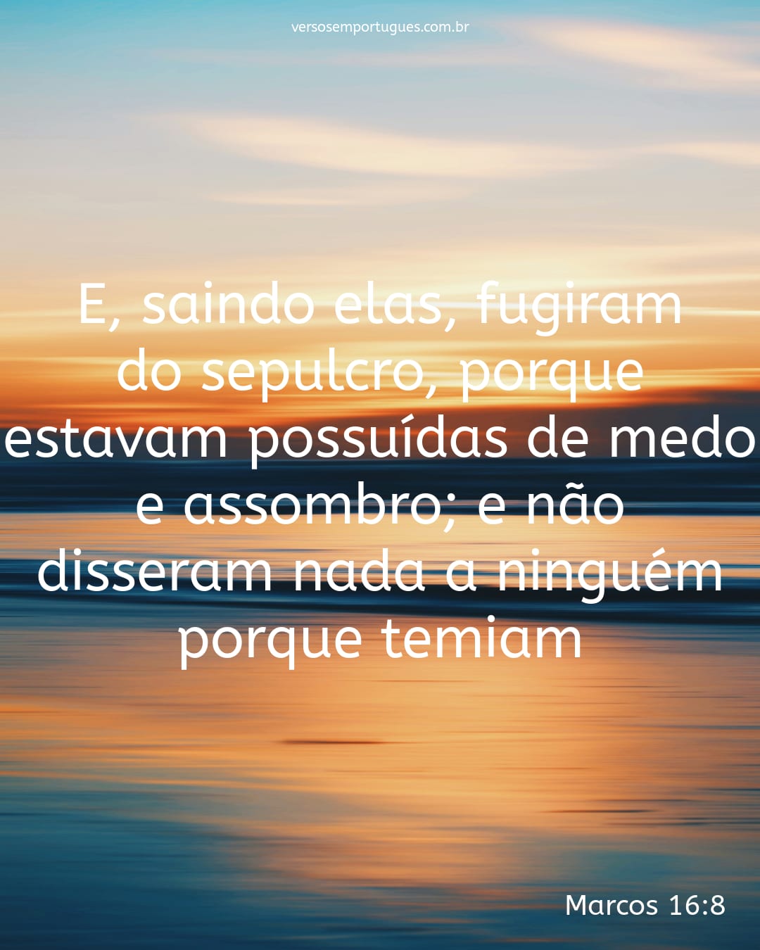 E, saindo elas, fugiram do sepulcro, porque estavam possuídas de medo e assombro; e não disseram nada a ninguém, porque temiam.
