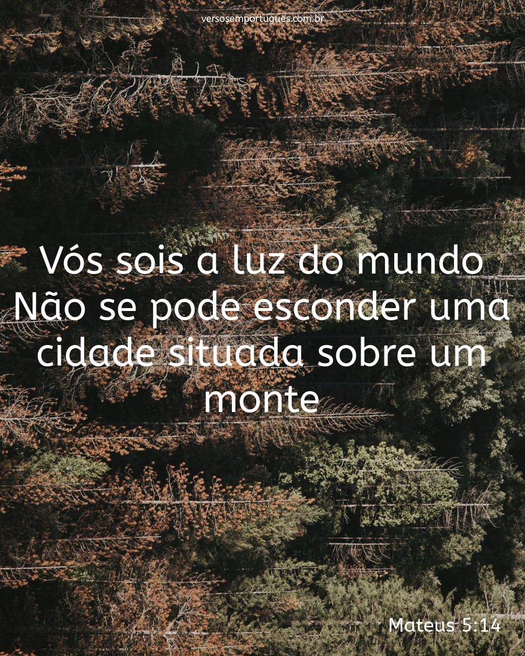 Assim resplandeça a vossa luz diante dos homens, para que vejam as vossas boas obras, e glorifiquem a vosso Pai, que está nos céus.