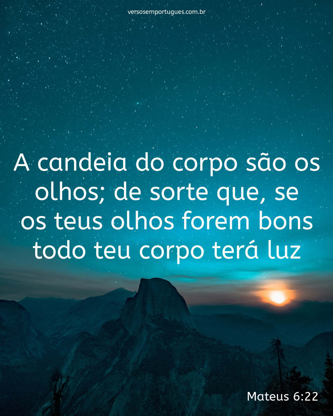 A candeia do corpo são os olhos; de sorte que, se os teus olhos forem bons, todo teu corpo terá luz;