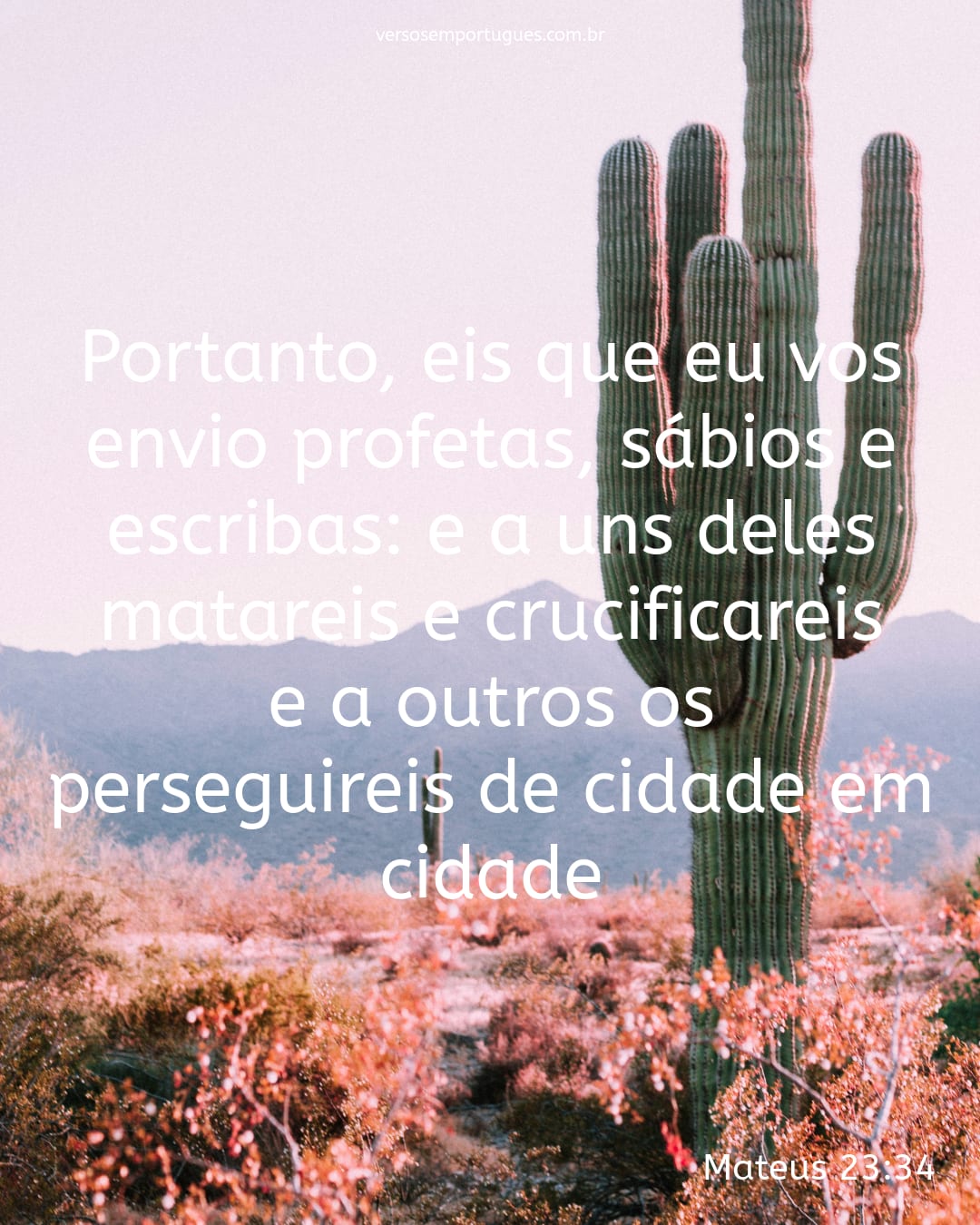 Portanto, eis que eu vos envio profetas, sábios e escribas: e a uns deles matareis e crucificareis; e a outros os perseguireis de cidade em cidade;