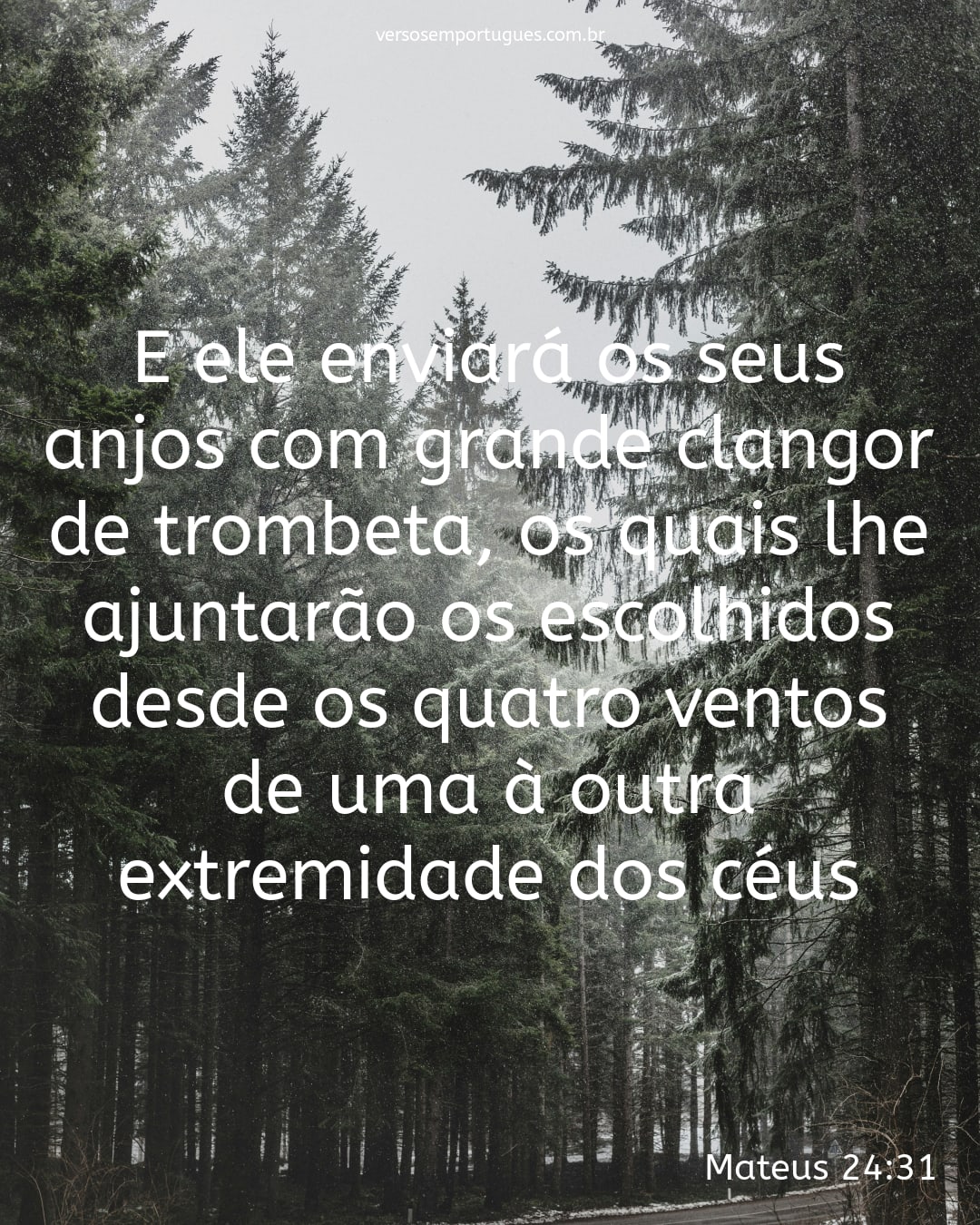 E ele enviará os seus anjos com grande clangor de trombeta, os quais lhe ajuntarão os escolhidos desde os quatro ventos, de uma à outra extremidade dos céus.