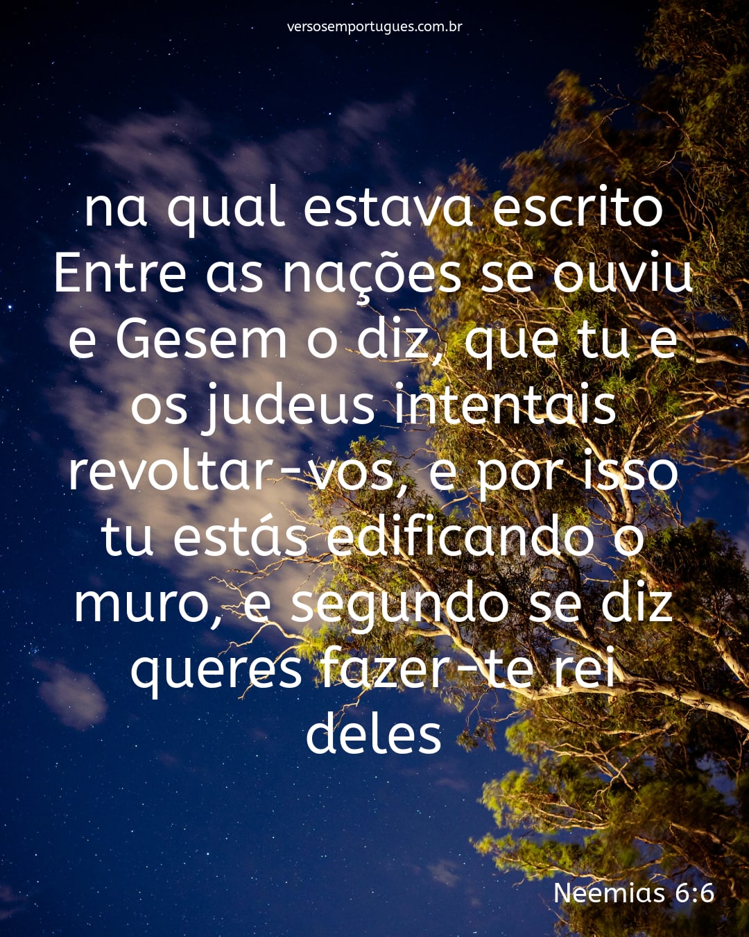 na qual estava escrito: Entre as nações se ouviu, e Gesem o diz, que tu e os judeus intentais revoltar-vos, e por isso tu estás edificando o muro, e segundo se diz, queres fazer-te rei deles;