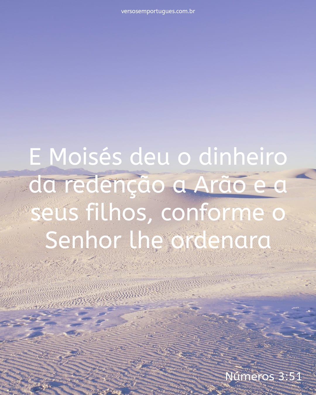 E Moisés deu o dinheiro da redenção a Arão e a seus filhos, conforme o Senhor lhe ordenara.