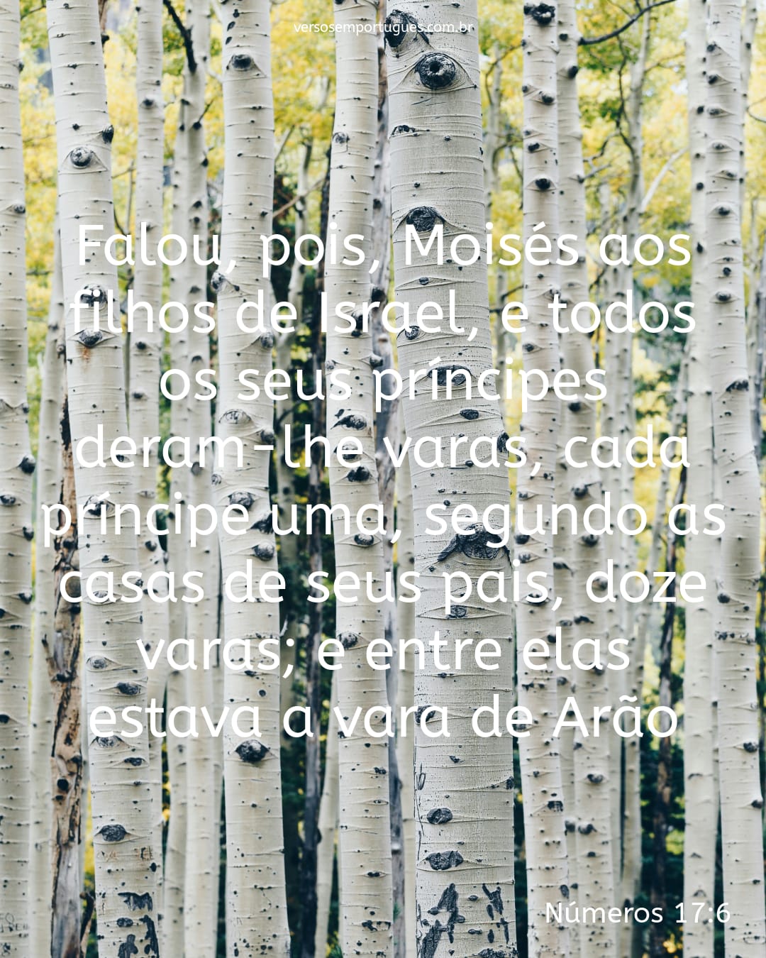 Fala aos filhos de Israel, e toma deles uma vara para cada casa paterna de todos os seus príncipes, segundo as casas de seus pais, doze varas; e escreve o nome de cada um sobre a sua vara.