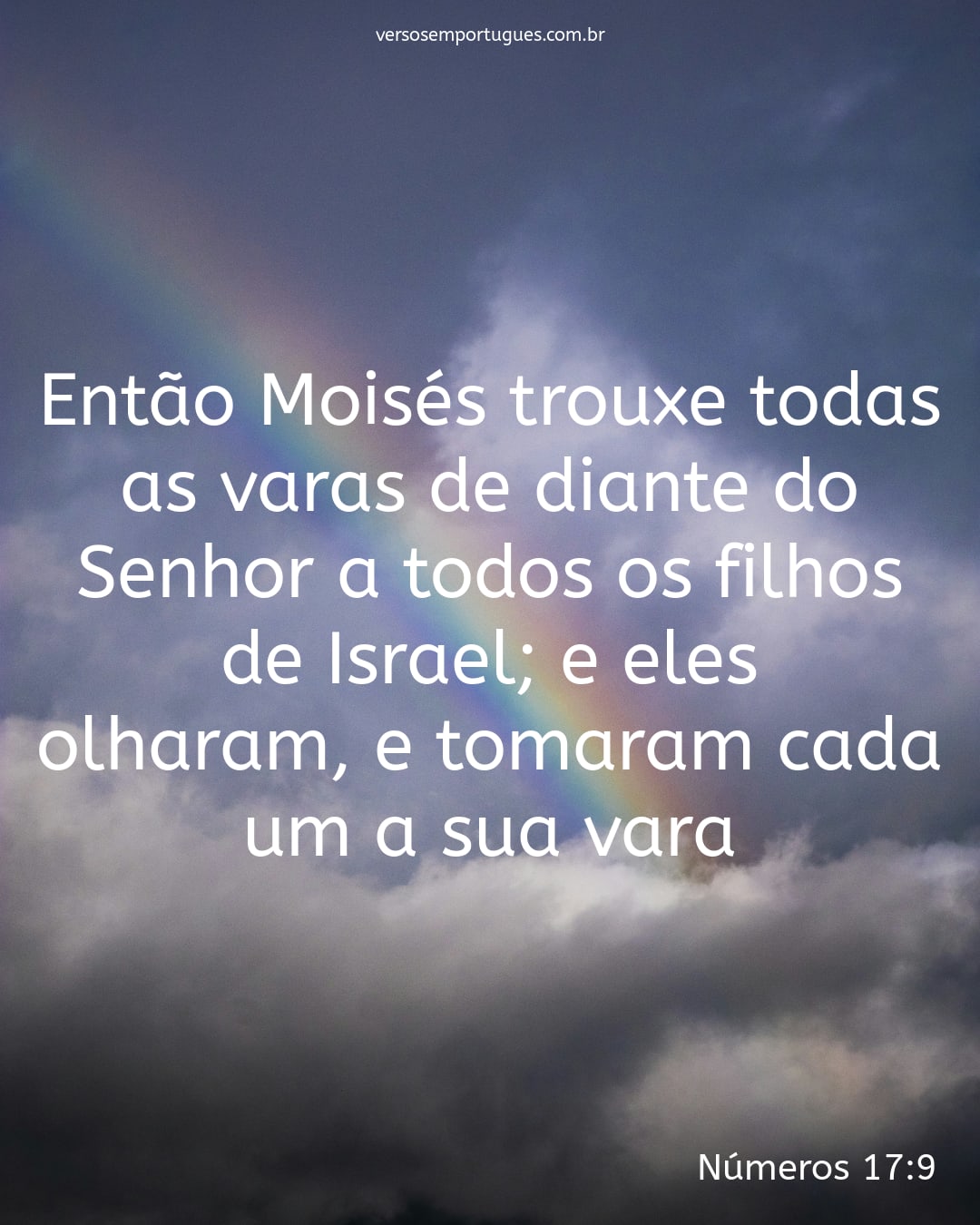 Então Moisés trouxe todas as varas de diante do Senhor a todos os filhos de Israel; e eles olharam, e tomaram cada um a sua vara.